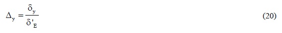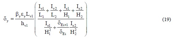 donde βy es un factor igual a 0.30 para elementos rectangulares de concreto reforzado; hv1 es el peralte de la viga correspondiente al claro 1; δEi y δEi+1 son las distorsiones del entrepiso donde ocurre la distorsión máxima y el inmediato superior, respectivamente, asociadas a la deformada obtenida del análisis modal del modelo elástico.