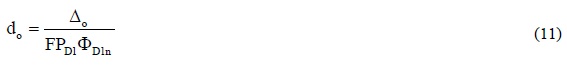 Como se mencionó anteriormente, se considera que la deformada obtenida de un análisis modal del "modelo dañado" de una estructura aproxima la deformada asociada a su etapa de comportamiento inelástico. Por lo tanto, es posible calcular el desplazamiento objetivo de azotea, Δo, en función de una distorsión objetivo de entrepiso, δo, y una distribución de daño propuesta, mediante la ecuación siguiente: