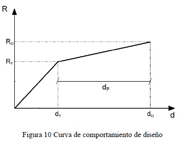 10) Definidos los puntos característicos, (dY,RY) y (dU,RU), se construye la curva de comportamiento de diseño (fig. 10).
