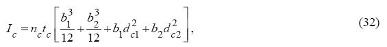 donde As1 y As2 son el área de acero que forma los castillos, dsi y dci son las distancias del centroide del muro al centroide del acero y al centroide del castillo, respectivamente; bi y tc son el ancho y el espesor de los castillos, respectivamente. Las relaciones entre los módulos de elasticidad de la mampostería con el acero de refuerzo, Es , y con el concreto que forma los castillos, Ec, están definidas respectivamente por: