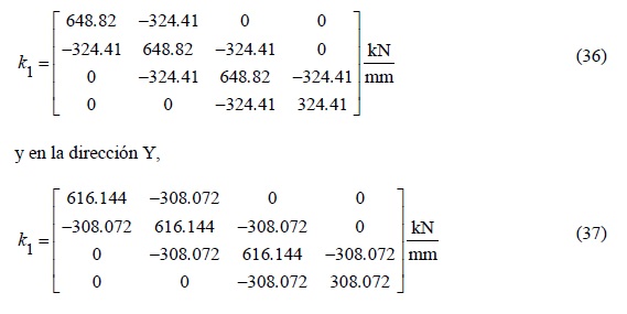En el inicio del proceso del cálculo, la matriz de rigidez en la dirección de análisis X es: