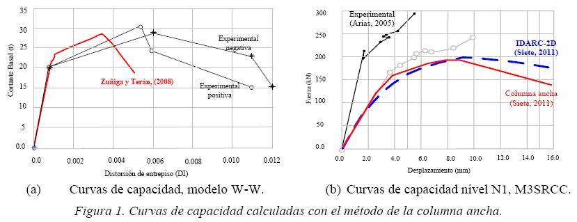 Las recomendaciones propuestas en Jean y Cesín (2000) corroboran que el método de la columna ancha es adecuado para el análisis y diseño elástico de estructuras de mampostería confinada y/o reforzada interiormente. De hecho, el método de la columna ancha es usado por Tena et al. (2010) para validar el procedimiento de diseño conocido como Método Simplificado. De lo comentado anteriormente se puede aceptar que el uso de la metodología de la columna ancha es adecuado para el cálculo de la rigidez elástica incluyendo deformaciones por cortante, pero para el cálculo de curvas de capacidad de estructuras de mampostería presenta inconsistencias, principalmente después de que ocurre el primer agrietamiento.