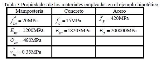 (1) Se calculan las constantes de cálculo del análisis como son: (a) el módulo de elasticidad de la mampostería y del concreto; (b) el módulo de rigidez al corte y compresión diagonal de la mampostería; (c) la masa de cada nivel considerando los entrepisos a ejes medios en la altura y (d) los esfuerzos a compresión actuantes en cada muro.