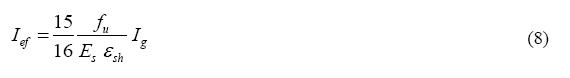 Donde fu es el esfuerzo de rotura del acero, Ig es el momento de inercia de la sección bruta del fusible y εsh es la deformación del acero al inicio del endurecimiento. Con esta expresión, las inercias efectivas correspondieron a 25%, 30% y 22% de la inercia de la sección bruta para los especímenes E1, A1 y A2, respectivamente.