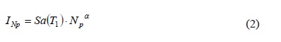 En la ecuación 2, INp es la medida de intensidad sísmica escalar, y el valor α es un parámetro que debe ser calibrado, en función de la estructura y el parámetro de demanda sísmica seleccionado. Buratti (2011, 2012) demostró que INp resulta más eficiente que un gran de número de medidas de intensidad sísmica encontradas en la literatura, entre las cuales se encuentran las propuestas por Housner (1952, 1970, 1975), Housner y Jennings (1964), Arias (1970), Araya y Saragoni (1980), Aptikaev (1982), Sarma y Yang (1987), FEMA (1994), Shome et al, (1998), Shome (1999), Mehanny y Deierlein (2000), Cordova et al, (2001), Riddell y Garcia (2001), Kurama y Farrow (2003), Baker y Cornell (2004), Baker y Cornell (2005), Baker y Cornell (2006), Mehanny (2009), entre otras.