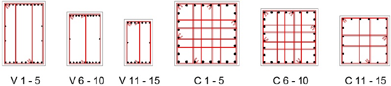 Figura 19: Detallado de elementos a flexocompresión por confinamiento dúctil, modelo de 15 niveles con α=0.25, β=0.50