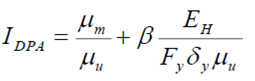 Peter Fajfar (1992) plantea que una vez que una estructura alcanza su rango de comportamiento plástico, su capacidad para disipar energía se reduce debido al daño acumulado causado por los ciclos de carga y descarga, en consecuencia una ductilidad equivalente debería usarse en lugar de la ductilidad monotónica creciente. A partir del caso de falla donde el I DPA =1, la ductilidad equivalente o máxima permisible que un sistema puede desarrollar se obtiene de la siguiente manera (Fajfar, 1992):