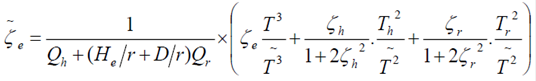Avilés y Pérez-Rocha (2003), basados en los análisis realizados al modelo anterior, demostraron que una estructura de base-flexible puede ser remplazada apropiadamente por un oscilador equivalente de base-rígida, el cual está caracterizado por el periodo y el amortiguamiento efectivo del sistema. Estos últimos se obtienen conforme a las ecuaciones 4 y 5.