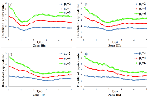Figura 4 Ductilidades equivalentes correspondientes a las distintas zonas sísmicas de las Ciudad de México, μ=4