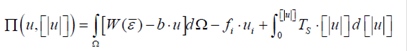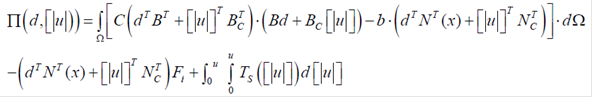 El funcional de energía del elemento barra con discontinuidad axial es (Juárez 2006):