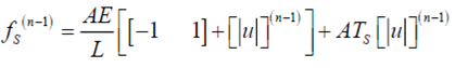 Los elementos viga-columna requieren de modelos constitutivos continuos con variables de la fuerza normal, N, contra la deformación, ɛ o modelos discretos, N-[|u|], como se muestra en la figura 8; además se requiere de modelos constitutivos continuos con variables de la fuerza cortante, V, contra la deformación por cortante, ℽ, o modelos discretos, V-[|w|], como se muestra en la Figura 9; y se requiere de modelos constitutivos continuos con variables del momento, M, contra la curvatura, κ, o modelos discretos, M-[|θ|], como se muestra en la Figura 10.
