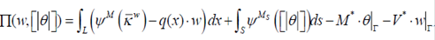El funcional de energía del elemento viga gruesa con discontinuidades, desarrollado por Juárez y Ayala (2012), es: