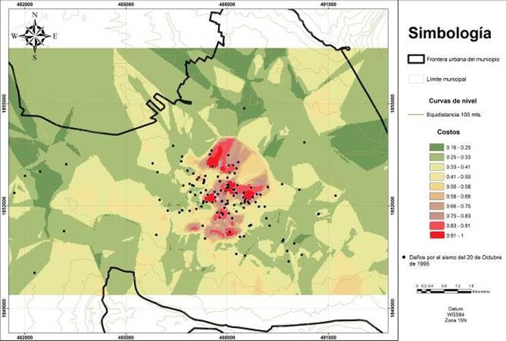 Considerando los daños históricos provocados por los sismos analizados en este trabajo, encontramos que otro factor importante en la concentración de daños en regiones específicas de la ciudad, es la edad de las construcciones. También se puede observar en la Figura 7 que en el centro de la ciudad se concentraron daños y, de acuerdo con el estudio de González et al. (2010), en esta zona se registran construcciones con mayor antigüedad, que de acuerdo con el levantamiento físico estos daños corresponden a construcciones de entre 10 y 30 años. Las construcciones más jóvenes que sufrieron afectaciones corresponden a edificios ubicados en la cercanía de los tributarios del río Sabinal o construidos en las laderas, y obedecen -por lo general- a construcciones que no fueron diseñadas, construidas y/o supervisadas con asistencia ingenieril.
