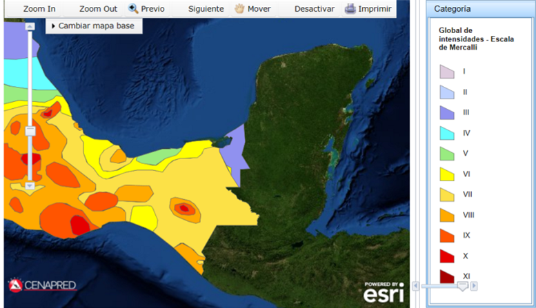Gutiérrez et al. (1991) construyeron un sistema llamado Diagnóstico del Peligro Sísmico (DPS), el cual retoma los trabajos de isosistas de Figueroa (1986), para construir histogramas de intensidades de las distintas regiones del país. En este trabajo la ciudad de Tuxtla Gutiérrez alcanza intensidades sísmicas de Mercalli de X y Tapachula presenta intensidades de Mercalli VII. Las intensidades sísmicas, al estar directamente relacionadas con los daños observados, son un buen indicador del peligro sísmico, lo cual permite considerar que Tuxtla Gutiérrez presenta un nivel de peligro sísmico importante. La evolución del trabajo de Gutiérrez et al., se trasladó al Atlas Nacional de Riesgos desarrollado por CENAPRED (2015), el cual considera un periodo de estudio de las isosistas de sismos hasta el año 1999 y emplea 52 mapas de isosistas de sismos importantes (Figura 3).
