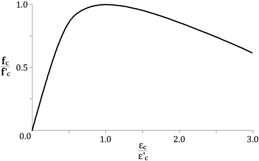 Se propone la ec. 16 para estimar ε’ c . La media y CV de los valores de ε’ c empleando la ec. 16 son iguales a 1.01 y 0.185, respectivamente. Esta expresión lleva a mejores resultados que con la propuesta de De Nicolo et al. (1994).