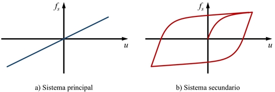 En las figuras 3a y 3b se muestra el comportamiento típico de los ciclos histeréticos para el sistema principal y secundario, respectivamente, donde f s es la fuerza restauradora.