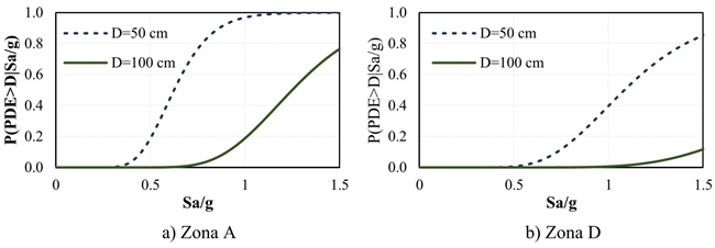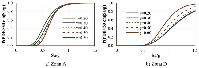 3. Con las estadísticas del PDE, se calculan las curvas de fragilidad, correspondientes a ciertos valores específicos del PDE, usando la siguiente ecuación (Esteva, 1967):