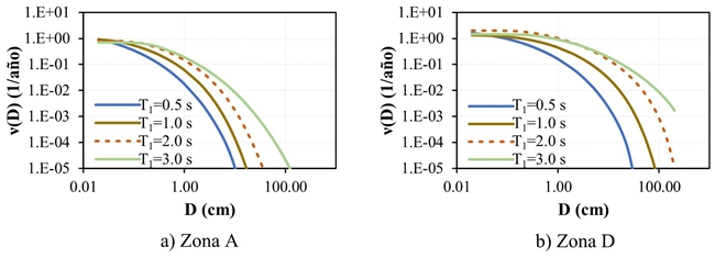 Los factores F md para cada zona se obtienen aquí a partir de cocientes de espectros de tasa de excedencia uniforme (ETEU) de desplazamiento asociados a una tasa media anual de excedencia ν=0.004, correspondientes a sistemas con disipadores histeréticos y ETEU para sistemas convencionales, suponiendo un porcentaje de amortiguamiento crítico ξ=5%, es decir:
