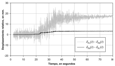 Se evaluó el deslizamiento en la base de la cortina ( Slb_MEF2D) mediante el valor máximo de la historia en el tiempo t de los desplazamientos relativos entre los puntos B y C mostrados en la figura 14. El deslizamiento puede entonces expresarse matemáticamente conforme a la ecuación 16.