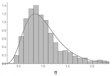 4. Utilizando la regresión obtenida en el paso 1 se calcularon 10,000 valores de η, considerando que xB-xC=lnSlb_MEF2D y η=aeb(ΔxB-xC) .