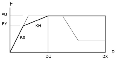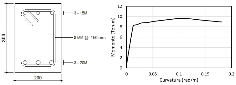 Posteriormente, se realiza el análisis no lineal de la estructura a partir de registro sísmico de Yautepec. En la figura 12 se muestra un ejemplo de los diagramas momento - curvatura que se tuvieron que obtener para el análisis no lineal. Se usó el modelo histerético trilineal ya que presenta una mejor aproximación de las características de rigidez sometidos a flexión, en cambio con el modelo bilineal no considera la degradación de la rigidez en la etapa de descarga (figura 13). Para las columnas se analizó la fuerza combinada bajo flexión biaxial, con carga axial, para secciones rectangulares, hay soluciones basadas en capacidades de la sección sobre los ejes principales (Furlong y Hsu, 2004), y que está publicado en (ASCE 41-13, 2019).