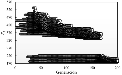 | Individuo | F1 | F2 | Distorsión | Costo | Costo/m2 |