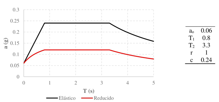 Como se tratan de edificios con problemas de irregularidad, es necesario realizar la evaluación de las condiciones establecidas en la sección 5.1 de las NTC-DS 2020 para poder asignar el factor de irregularidad correspondiente y con ello calcular el espectro de diseño reducido. Aunque la norma vigente establece que el diseño de las estructuras con PBD debe realizarse con las especificaciones de la sección 5.2 de las NTC-DS, para este caso, al tratarse de una revisión y no un diseño, la estructura se evaluará con el espectro de diseño reducido tomando en cuenta el caso más desfavorable y con ello obtener una clasificación de la estructura adecuada.