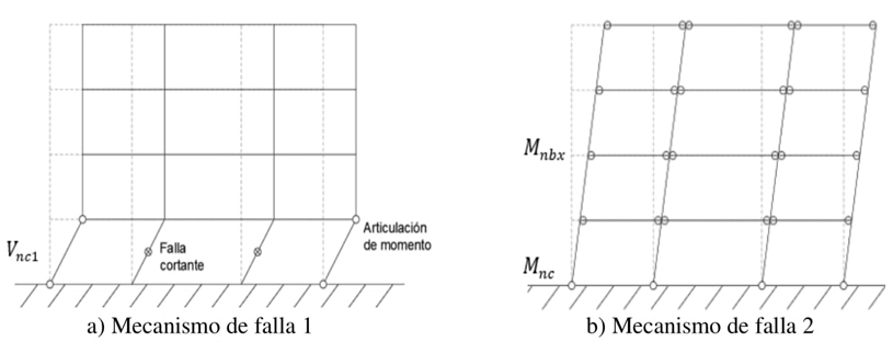 De acuerdo con el tipo de estructuración de los modelos de análisis, el mecanismo de colapso a evaluar corresponde al mecanismo 1 descrito en la metodología FEMA. Este mecanismo de falla asociado a la planta baja débil considera lo siguiente: