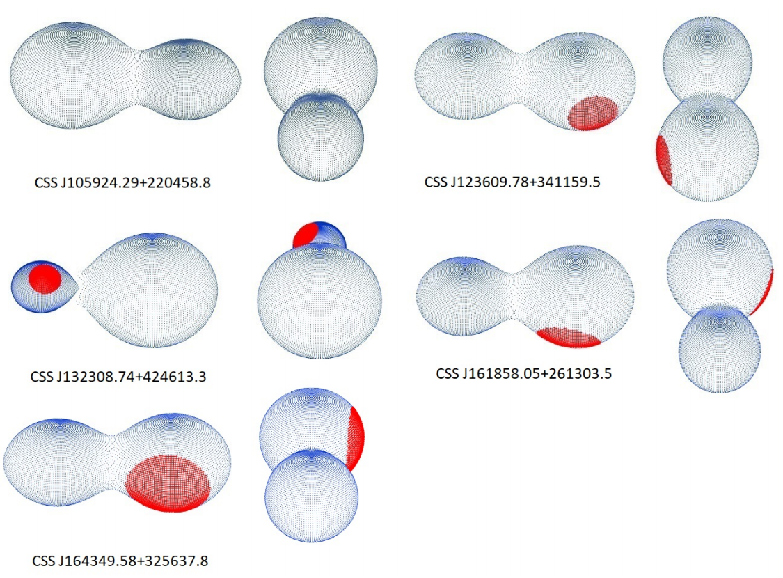 The low inclination, between 41° and 62°, is another common characteristic of the systems here presented; values like this are often seen in other contact binaries.