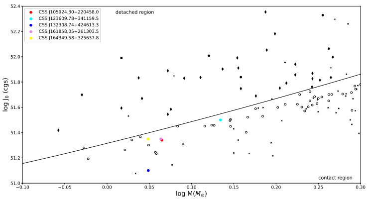 The position of J132308 suggests again that it could be a system at the beginning of the contact phase.