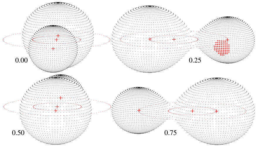 Fig. 5 The W-type contact binary V840 Lyr’s Roche configuration at phases 0.00, 0.25, 0.50, and 0.75. The color figure can be viewed online.
