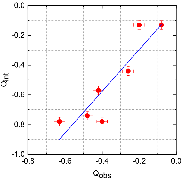Figure 12 shows the relation we obtain from Table 31 between the observed Q index (Q obs ) and the Q associated to the spectral type reported in SIMBAD (Q int ). We fitted a least squares straight line that produced the following equation: