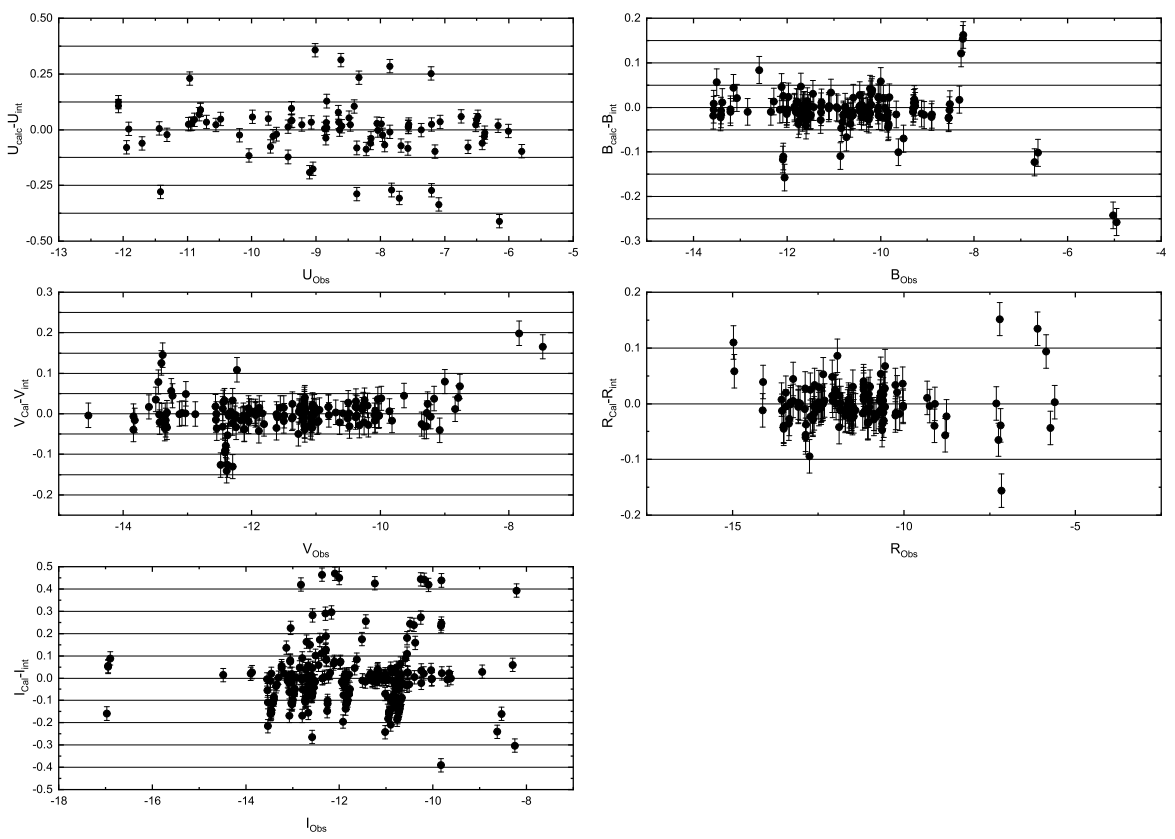 In Figure 3 we see graphs of the calculated magnitude minus the intrinsic magnitude versus the observed instrumental magnitude