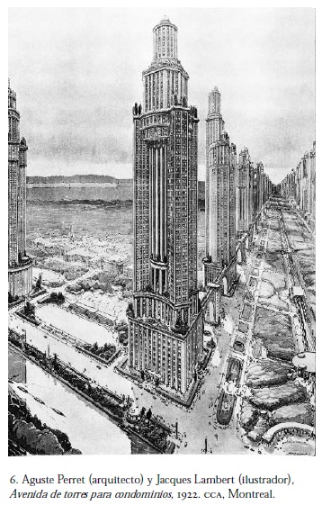 "Scenes of the World to Come: European Architecture and the American Challenge, 1893-1960"19 fue un proyecto de investigación y exposición que Jean-Louis Cohen inauguró en 1995 en el CCA (figura 6); es parte de una serie sobre el American Century, cuyas características urbano-arquitectónicas son eficiencia, comercialización y movilidad de la construcción del hábitat. No es una casualidad que el catálogo termine con la imposición del parque temático Euro Disney en París (1992), porque esto marca un hito de cien años de "americanización" que empiezan, según el autor, con la Expo Mundial de Chicago en 1893. Durante décadas, la producción arquitectónica y urbana de los Estados Unidos determinó la subconciencia cultural de Europa, especialmente de Alemania, Francia, Italia, e incluso Rusia. La "americanización" fue elemento constitucional de la "modernidad"; sus mensajes se catalizaron en un imaginario de la producción industrial masiva, estandarizada.