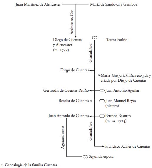 Hay algunas noticias dispersas concernientes a pintores tapatíos o que trabajaron en Guadalajara durante los siglos XVII y XVIII. Uno de ellos es Diego de Cuentas, de quien conocemos algunos datos biográficos1 y una cantidad considerable de obras en distintas ciudades del país. Sin embargo, la escasa investigación documental llevada a cabo hasta hoy para explicar la pintura colonial de la Nueva Galicia no nos había permitido ampliar la información de ese artista desde 1960.2 El presente artículo tiene como objetivo aportar nuevos datos sobre él y su familia, así como de la dinámica del trabajo en su obrador, por medio de las noticias consignadas en el proceso que el nieto de Diego de Cuentas siguió en contra de su tío por la venta de una casa.3