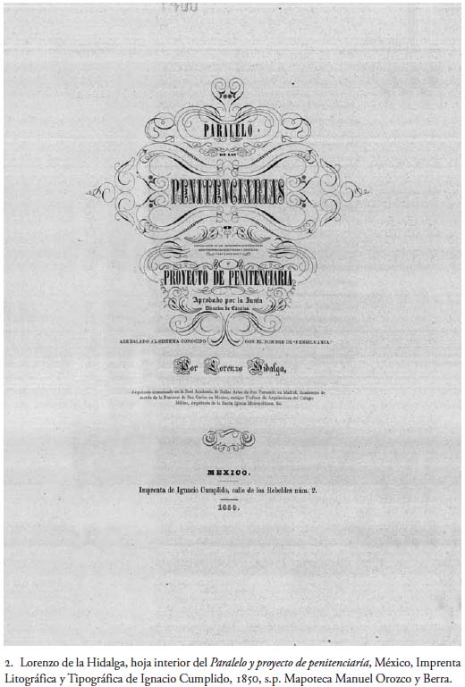 En las diversas ocasiones en que me he aproximado a la obra de este arquitecto, únicamente me referí a la encomienda de construir la cárcel mencionada y al modo en que tal proyecto se frustró, probablemente debido al cambio de autoridades en la ciudad. Sin embargo, en 1994, en mi artículo titulado "El Palacio de Lecumberri y su contexto arquitectónico", al encontrar el Paralelo y proyecto de penitenciaría junto con algunas ilustraciones de panópticos importantes, e incluso algo de lo ideado al respecto por Lorenzo de la Hidalga, decidí incorporar a ese trabajo tan importante escrito.1
