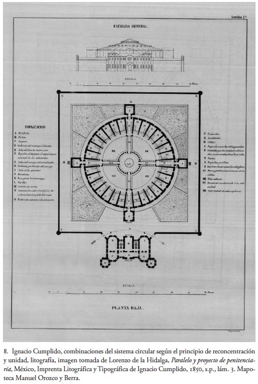 En 1848, la Junta Directiva de Cárceles de la ciudad de México solicitó a Lorenzo de la Hidalga un proyecto para edificar una penitenciaría en esa capital. La novedosa propuesta del arquitecto español no se hizo esperar y en la "Advertencia" con que da inicio a su respuesta comenta que tratará de llevar a cabo un "panóptico", es decir, un edificio ceñido a la norma circular, construcción que, al decir de De la Hidalga, seguía o estaba "arreglado al sistema conocido con el nombre Pensilvania". Ese plan fue aprobado por la Junta mencionada y el autor declaró, en la explicación de su programa, que trataría de realizar una "comparación de las diferentes combinaciones arquitectónicas ejecutadas y proyectadas hasta hoy":