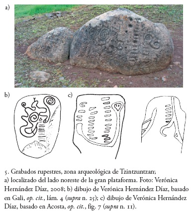 20 Se hace referencia precisa a los estudios que presentan estas evidencias arqueológicas en Verónica Hernández Díaz, Imágenes en piedra de Tzintzuntzan, Michoacán. Un arte prehispánico y virreinal, México, Universidad Nacional Autónoma de México-Coordinación General de Estudios de Posgrado (Colección Posgrado), en prensa. [ Links ]