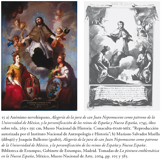 Este fenómeno de apropiación y contestación religiosa, palpable en las devociones tardobarrocas y aquí tan imantadas por la ideología de los criollos, se manifestó de una forma por demás temprana, expresiva y peculiar, en especial para un virreinato como la Nueva España, necesitado de edificar una identidad precisa y, me atrevo a decir, mediante el uso de imágenes politizadas como demandas, alegatos o representaciones de su sociedad dirigente. El culto nepomuciano también lo propagaron los jesuitas checos llegados al virreinato para misionar en el norte, pero sorprende por el arraigo tan hondo y prolongado que alcanzó en tan dilatado territorio a lo largo de toda esa centuria y buena parte del siglo XIX, más aún por provenir de una región de la Europa del Este tan remota y sin aparentes nexos culturales con nuestras latitudes.