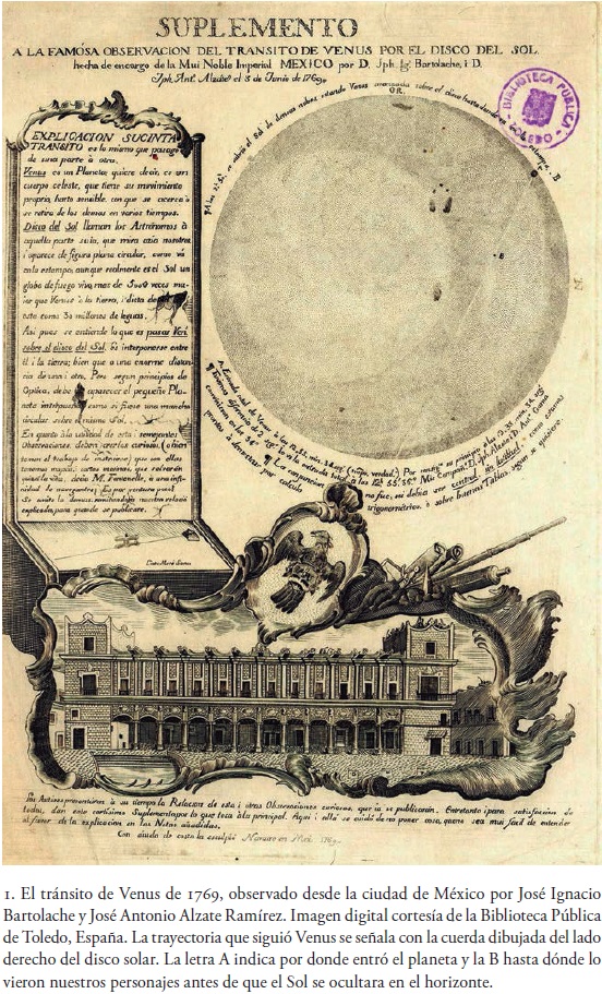 La rareza de ese grabado novohispano del siglo XVIII (fig. 1) y su valor como obra científica y artística de aquella época, aunados al reciente tránsito venusino del 5 de junio de 2012, observado desde gran parte del territorio nacional por muchos mexicanos interesados en ese suceso el cual sólo volverá a ocurrir el ii de diciembre de 2117,17 nos convenció de la necesidad de rescatar tan notable y bello documento colonial mexicano.