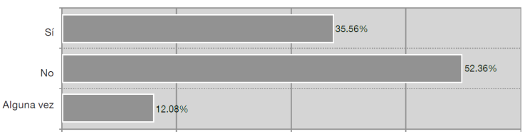 Más de la mitad de los encuestados (52.36%) contestaron que nunca se han visto obligados a realizar un acto de corrupción; el 35.56% manifestó que alguna vez se lo han propuesto, mientras que el 12.08% sí. Este dato podría entrar en conflicto con los resultados de la ENCIG, pues de acuerdo con ésta más del 80% de los encuestados manifestaron que las prácticas de corrupción en Tamaulipas son “muy frecuentes” y “frecuentes”.