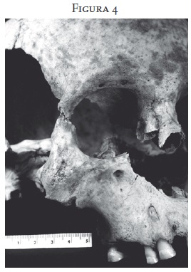 Lumbrera 14. A nivel general, el material óseo consiste en cinco cráneos, en su mayoría completos, incluyendo, en algunos casos, las primeras vértebras cervicales. De los cinco individuos de la lumbrera 14, cuatro son de sexo femenino (cráneos 1A, 1B, 3B y 5) y uno de sexo masculino (cráneo s/n). Dos de ellos pertenecen al rango de edad de 14 a 16 años (3B y 5), mientras que los otros tres están en un rango de 20 a 25 años de edad aproximadamente (1A, 1B y s/n). Todos presentan huellas de manipulación intencional humana que evidencian acciones de desollamiento, raspado, desarticulación, fracturas y perforaciones del cráneo. En todos los casos la perforación del cráneo se realizó únicamente en uno de los lados del cráneo y no en ambos; cuatro de los individuos presentan la perforación en su parietal y temporal derechos (1a, 1B, 3B y s/n), mientras que sólo un individuo de sexo femenino de 14 a 16 años presenta la perforación en su parietal y temporal izquierdo (5).