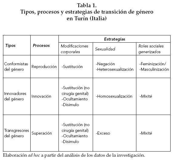 Palabras clave: transición de género, "hacer el género", conformistas del género, innovadores del género, transgresores del género.