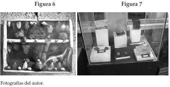 • Dos vitrinas de piezas arqueológicas "del suelo coahuilense" (explicaré luego por qué considero estos objetos como "paisaje exhibido")20 (véanse las figuras 6 y 7).