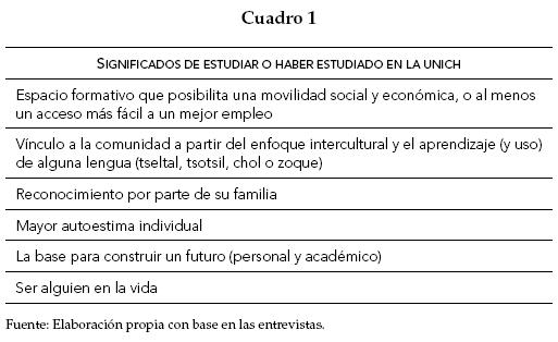 The goal of this article is to present, from an ethnographic perspective combined with biographical narrative, experiences and meanings that have been constructed by the students and graduates of the Intercultural University of Chiapas (Unich-San Cristobal de las Casas).