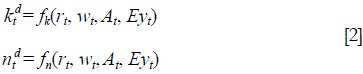 In the period t = 0, the firm decides upon its inputs (kdt, ndt) given expected demand for its products Eyt related to its perceived demand curve. Standard (one-period) profit maximization yields the factor demand functions: