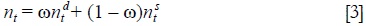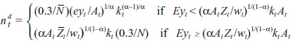 where ω measures the degree to which employment is determined by labor demand and (1 - Co) by labor supply. In this context then, nt is the actual employment.5