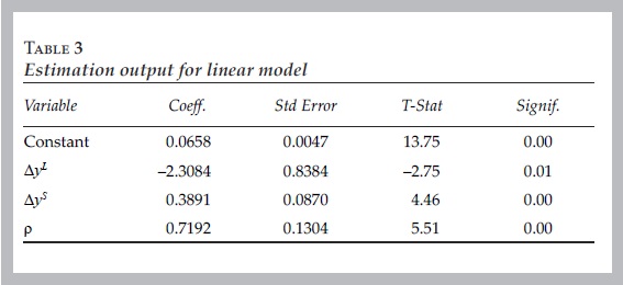 It shows that all of the included variables are highly significant. An increase in long-run 1% productivity growth over a period of 15 years appears to translate in a twice as high reduction of unemployment rate. The effect of short-run productivity growth appears to have a slightly positive effect on unemployment. These results confirm the previous preliminary examination in section 2. In the next section these results are analyzed in the SVAR framework in order to gain deeper insight in the relationship between productivity and unemployment.