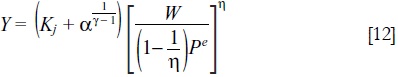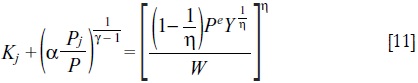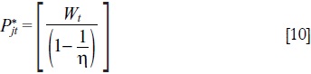 In order to understand the behavior of the general price index and the path of the economy in the analysis, it must be stressed how expectations may affect the profit maximizing price determined by the firm. Substituting equation [9] in equation [7] and solving for the price determined by the firm, the result shows that the price follows the demand and the costs of the firm, expressed, respectively, by the elasticity parameter and by wages, as equation [10] shows: