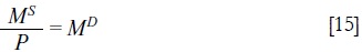 where: MS is the nominal money supply; which it is considered constant, MS =